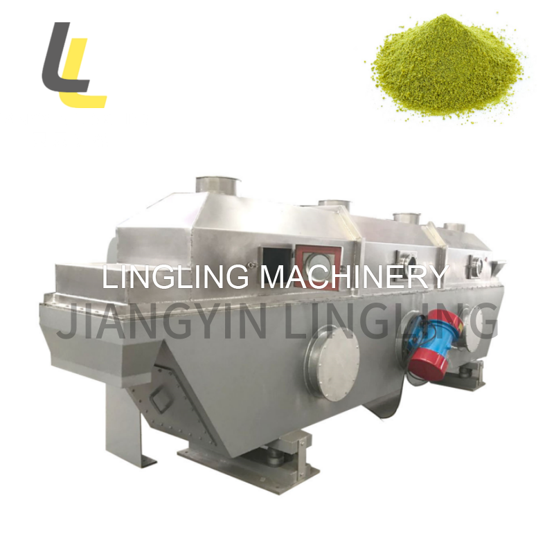 The vibration fluid dryer is a horizontal type drying machine,it can vibrate and dry at the same time, when machine working,material will jump and run under the vibrating motor,material will not get together,so material can be dried more quick. The vibrating fluid bed dryer capacity is very big,normally more than 1000kg per hour.